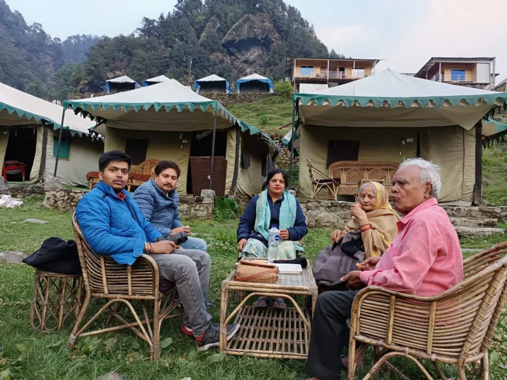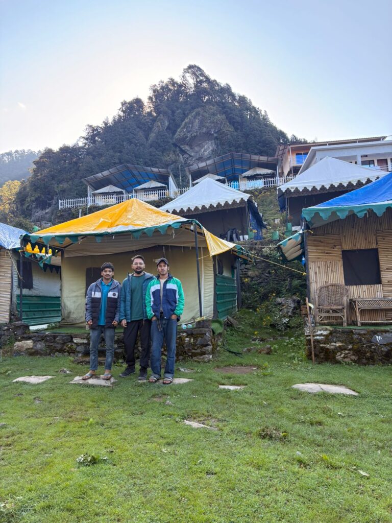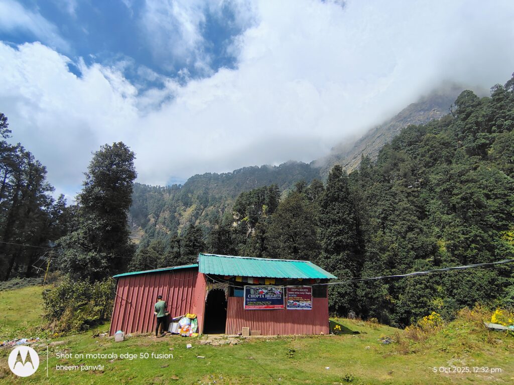 The campsite provides clean and comfortable tents with all basic facilities, perfect for travelers who want to experience the raw beauty of Chopta. Guests can enjoy bonfires, stargazing, and the calm sound of nature all around.